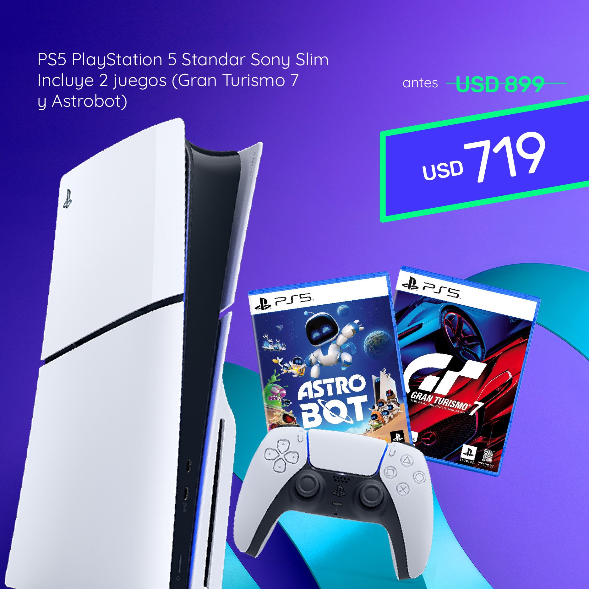 Ver Producto1 /Consola PS5 PlayStation 5 Digital Sony Slim - Incluye 2 juegos (Gran Turismo 7 y Astrobot)