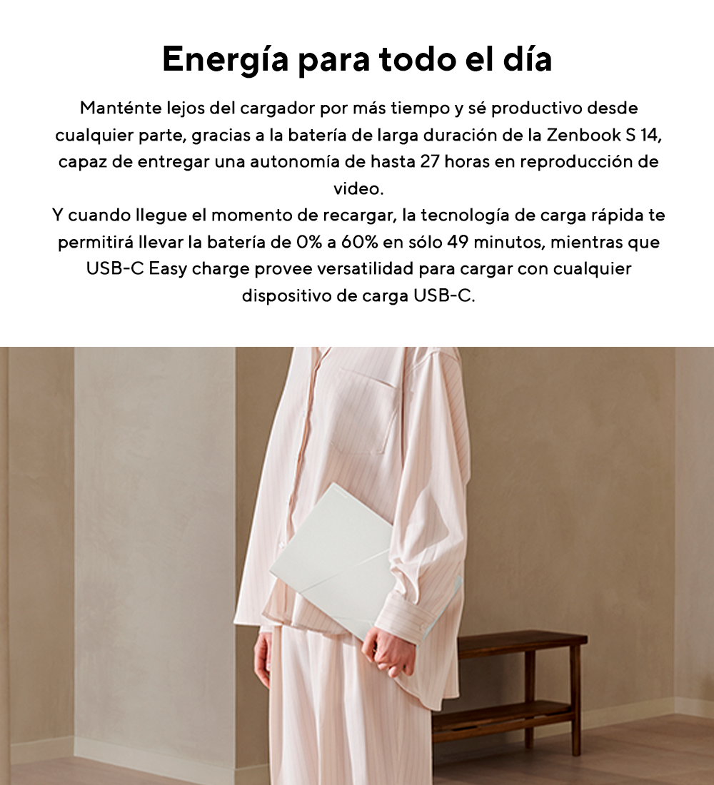 • Alimentación: Tipo C; adaptador 65 W CA; Salida: 19 V CC, 3,42 A, 65 W; Entrada: 100~240 V CA 50/60 Hz universal.